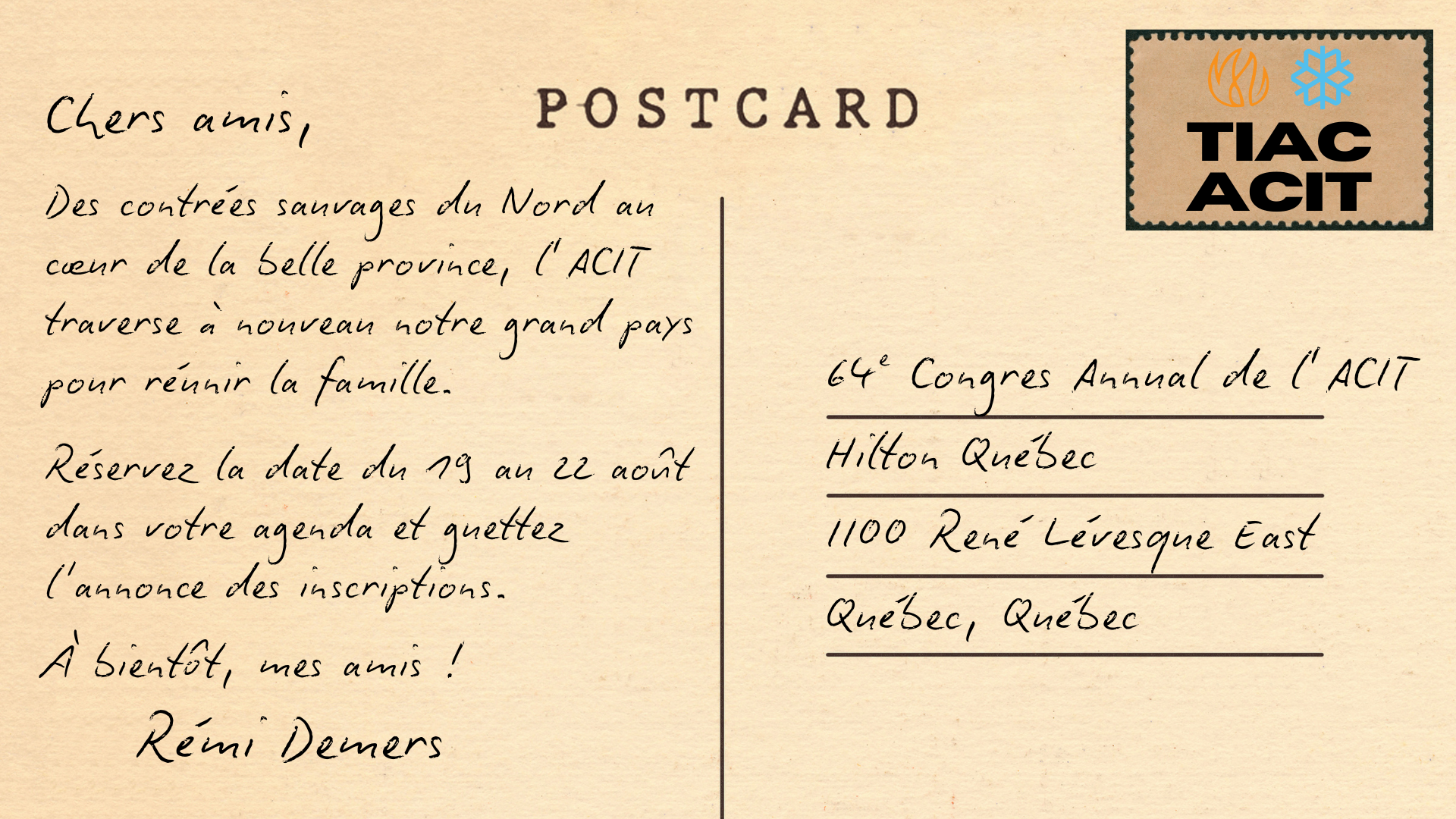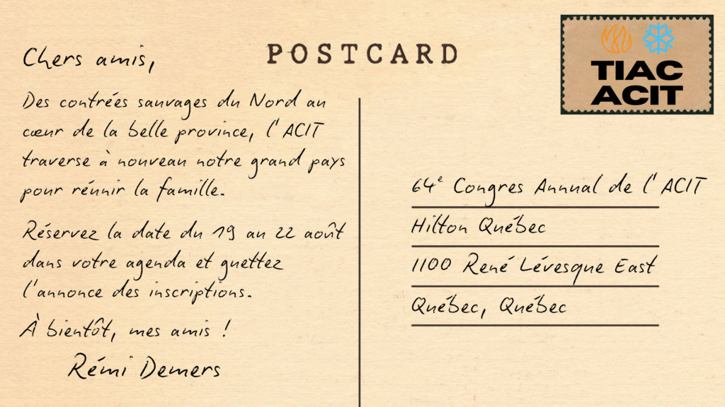 64e Conférence annuelle de l’ACITLes 19 au 22 août 2026 Hilton Québec |
